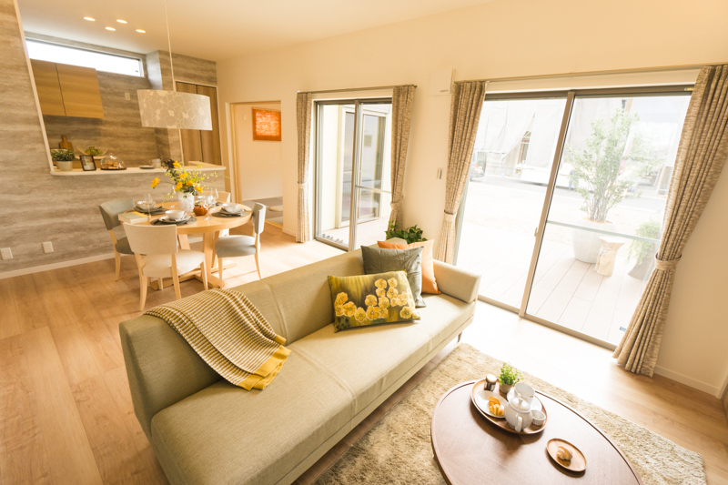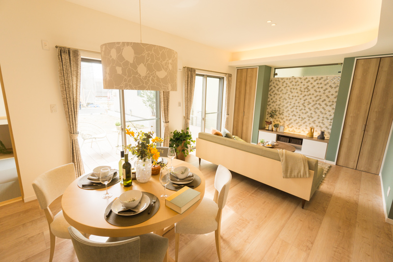 新しいモデルハウスは、目に優しい色合いや照明などを使っており、ゆっくりとリラックスして頂ける空間となっています。また、40号地の広いウッドデッキは解放感があり、小さいお子様の遊び場になったり、ペットの安らぎスペースになったりと、多目的に活用していただけます。