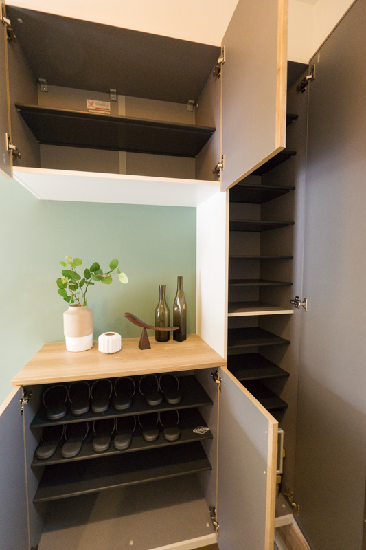先ほども見ましたが、玄関とキッチンが直接つながっているので、重たい荷物を抱えた買い物帰りにもそのままキッチンに向かってすぐに冷蔵庫やパントリーに収納できます!