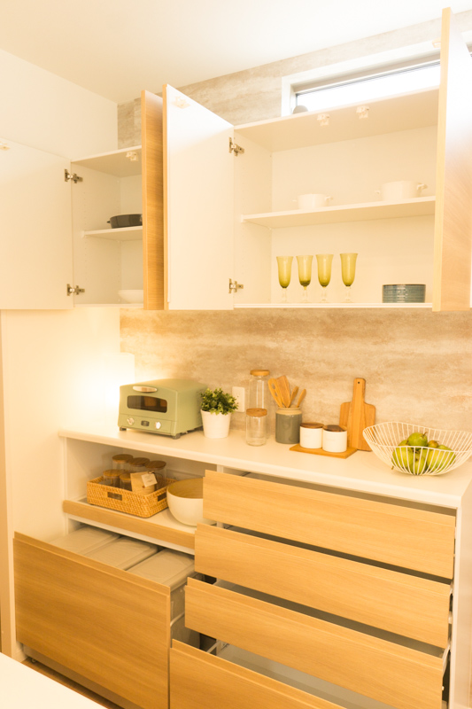 カウンターキッチンでリビング・ダイニングにいる家族を見守りながら、お料理することが出来ます。