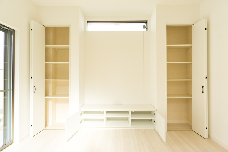 リビング収納は、家族のものをそれぞれ2カ所にしまえます。