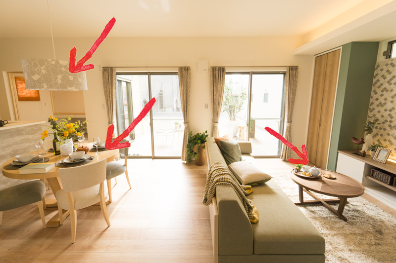 よく見ていただきたいのですが、家具や照明も丸いものが選ばれています。