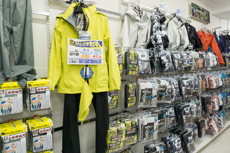 店舗ではレインウェアなども扱っていて、機能性が高く価格も抑えているので一般の方にも喜んでもらえるものも意外と多いんですよ?