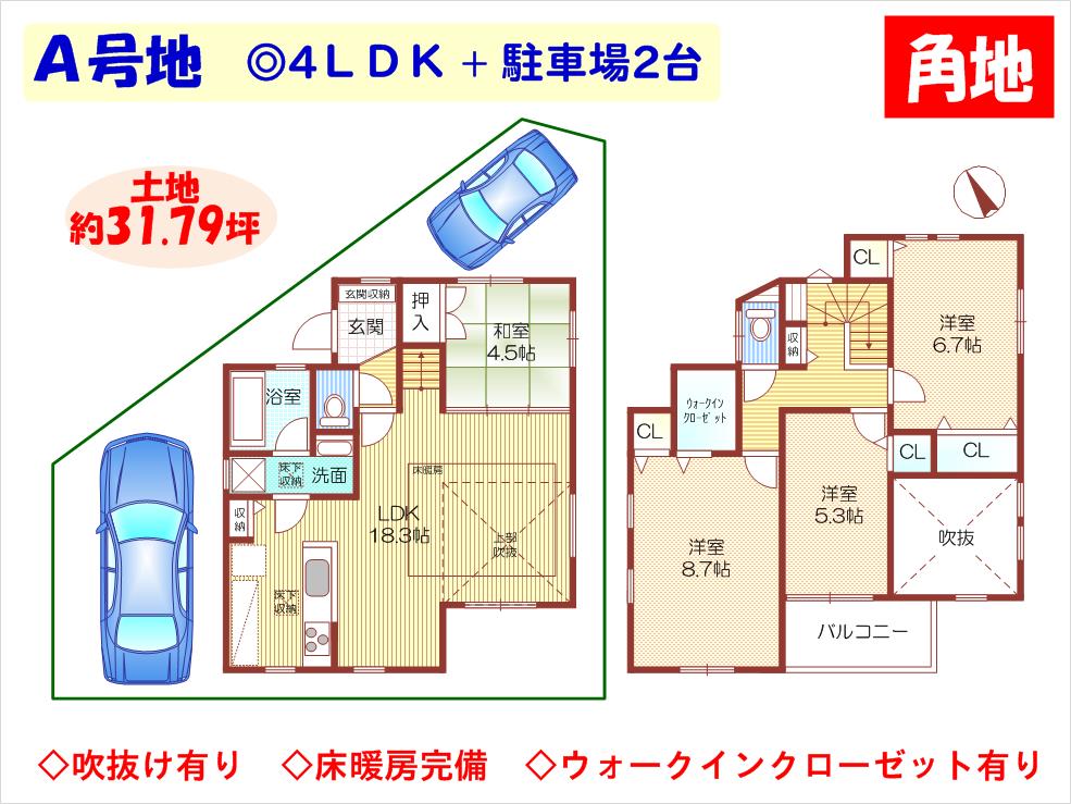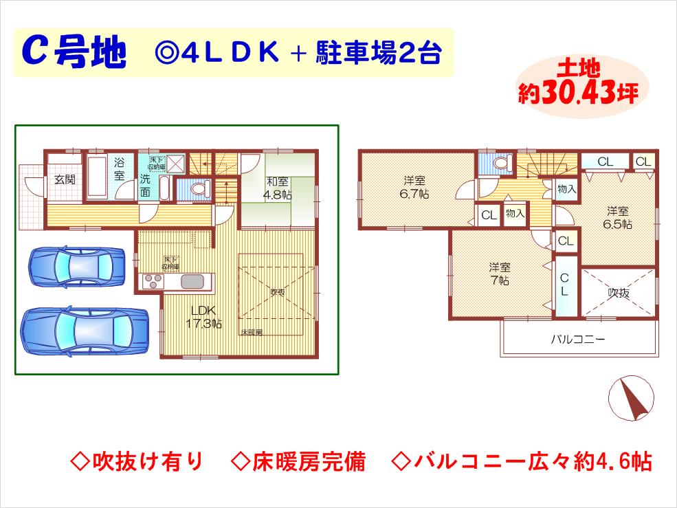 車2台駐車可能!(E号地は1台)