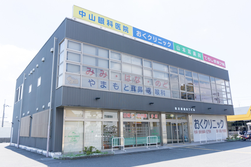 中山眼科医院・おくクリニック(内科)・山本耳鼻科・てらしま皮フ科などが入る、枚方長尾NTビルまでは約650m!