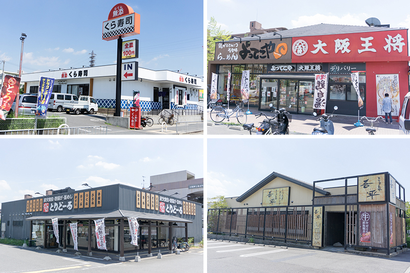 さらに無添くら寿司 枚方長尾店(→店舗情報)やラーメンよってこやと併設している大阪王将長尾店(→店舗情報)、とりどーる枚方店(→店舗情報)とりあえず吾平 大阪枚方店(→店舗情報)など飲食店もずらり!