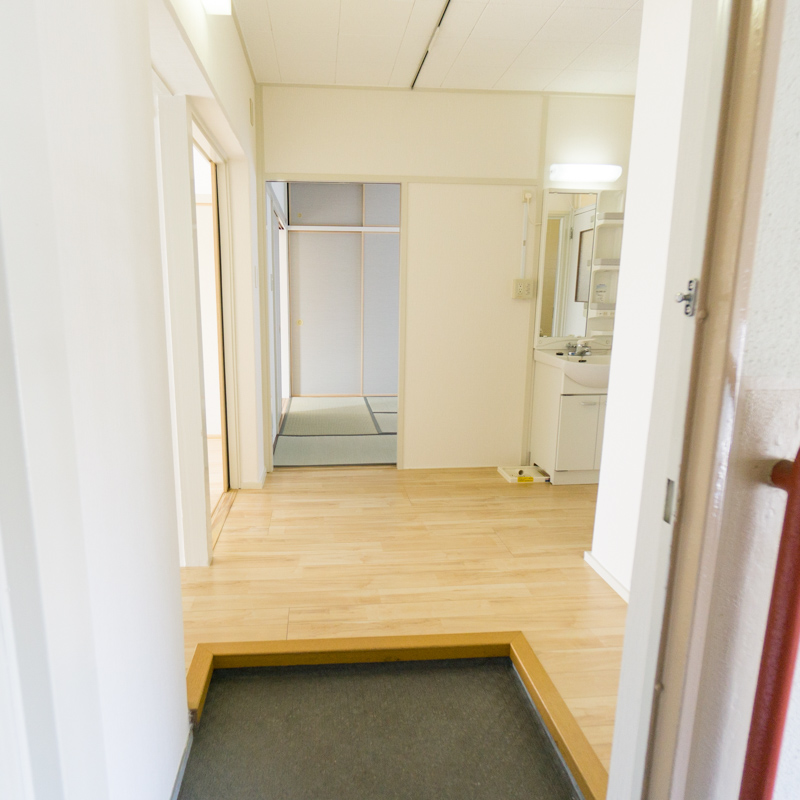 入り口からのファーストビューはこんな感じ。木目調のフローリングが暖かく迎えてくれます。