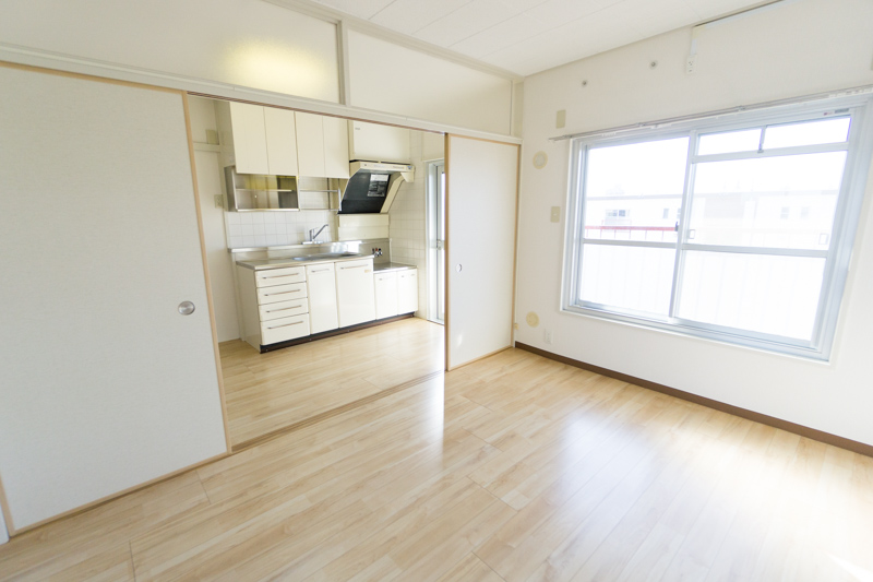 手前は8.1㎡ある洋室、奥は6.6㎡あるキッチンです。