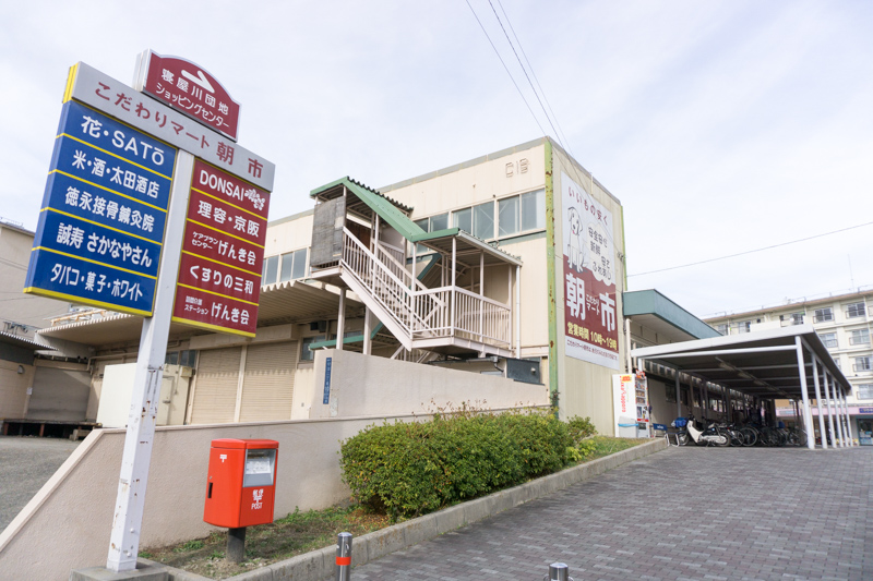 寝屋川団地ショッピングセンター内には小売店や薬局などが並びます。