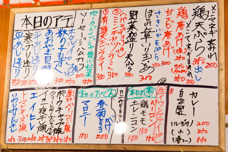 旬のものを取り入れている「夢屋のオススメ」は店内のホワイトボードに書かれています。