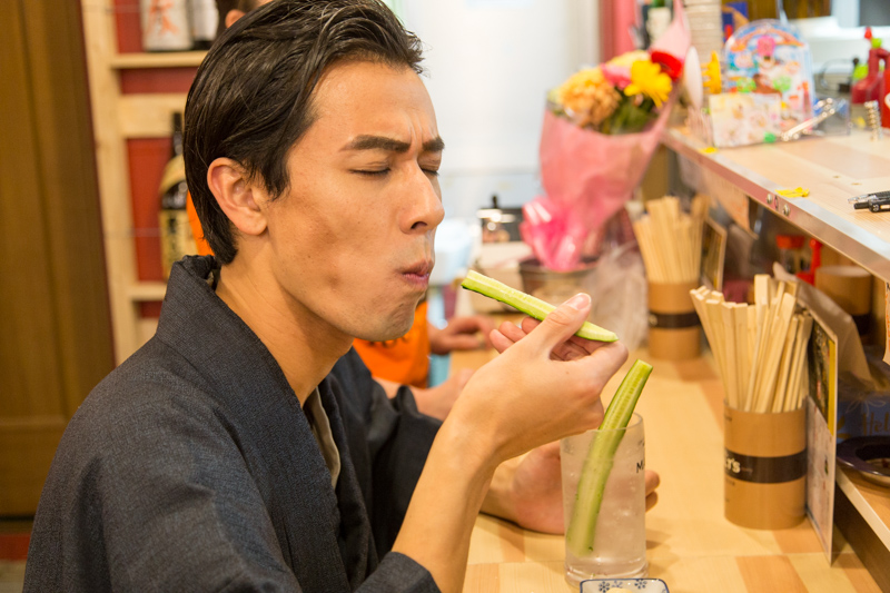 あしらわれてそのまんまキューリを飲む枚・かた男。