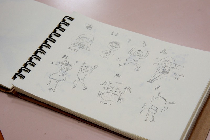 これは“あ”から順番に連想する人の動作を描いていっているそうです。