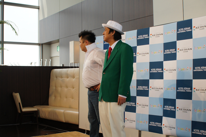 兄さん お前が言うなよ!まぁあのー、そうですね…。いやそうですねというか(笑) このユニバーサルという場所でやらしてもらうのも一つのターニングポイントといいますか、共存共栄していけばいいかなと思いますしね。ここは京阪のホテルですし。