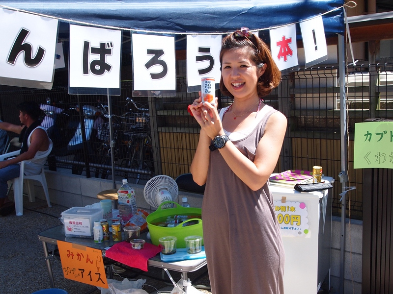 夏さんは看護師さんをされていて、撮影日は五六市の場を借りてグループホームのチャリティー企画で義援金を集めるお手伝いをされていました。地域の八百屋さんや身近な方々の協力を得て出店しているそうです。写真のジュースが美味しいと熱く語っていました。どちらかと言えばジュースよりビールジョッキが似合うような気がするのは気のせいでしょうか(笑)