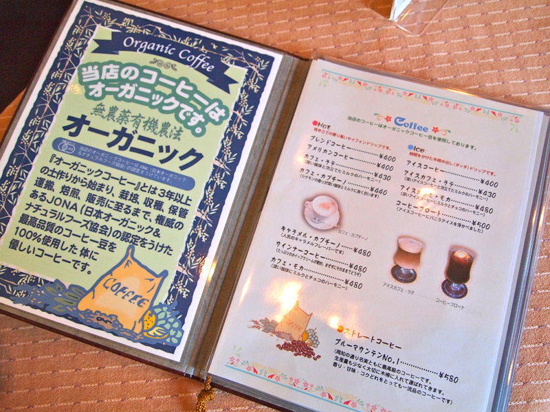 外に貼られてるメニュー。カフェにしてはメニューが豊富です。(→詳細はコチラ)