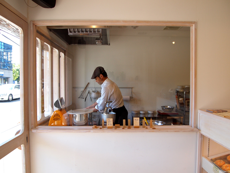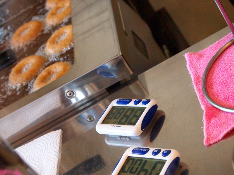 左を向くと実際にドーナッツを揚げてるところなどが見られます。