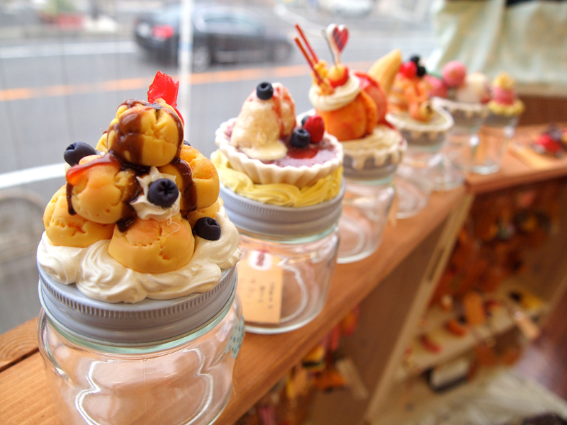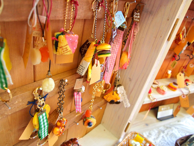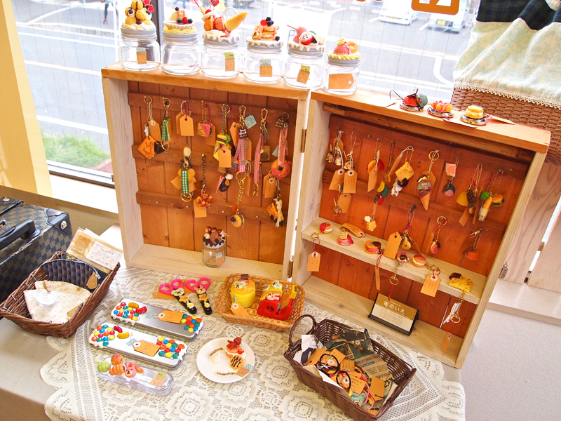 スイーツデコやキーホルダーなど。文具もデコられています。