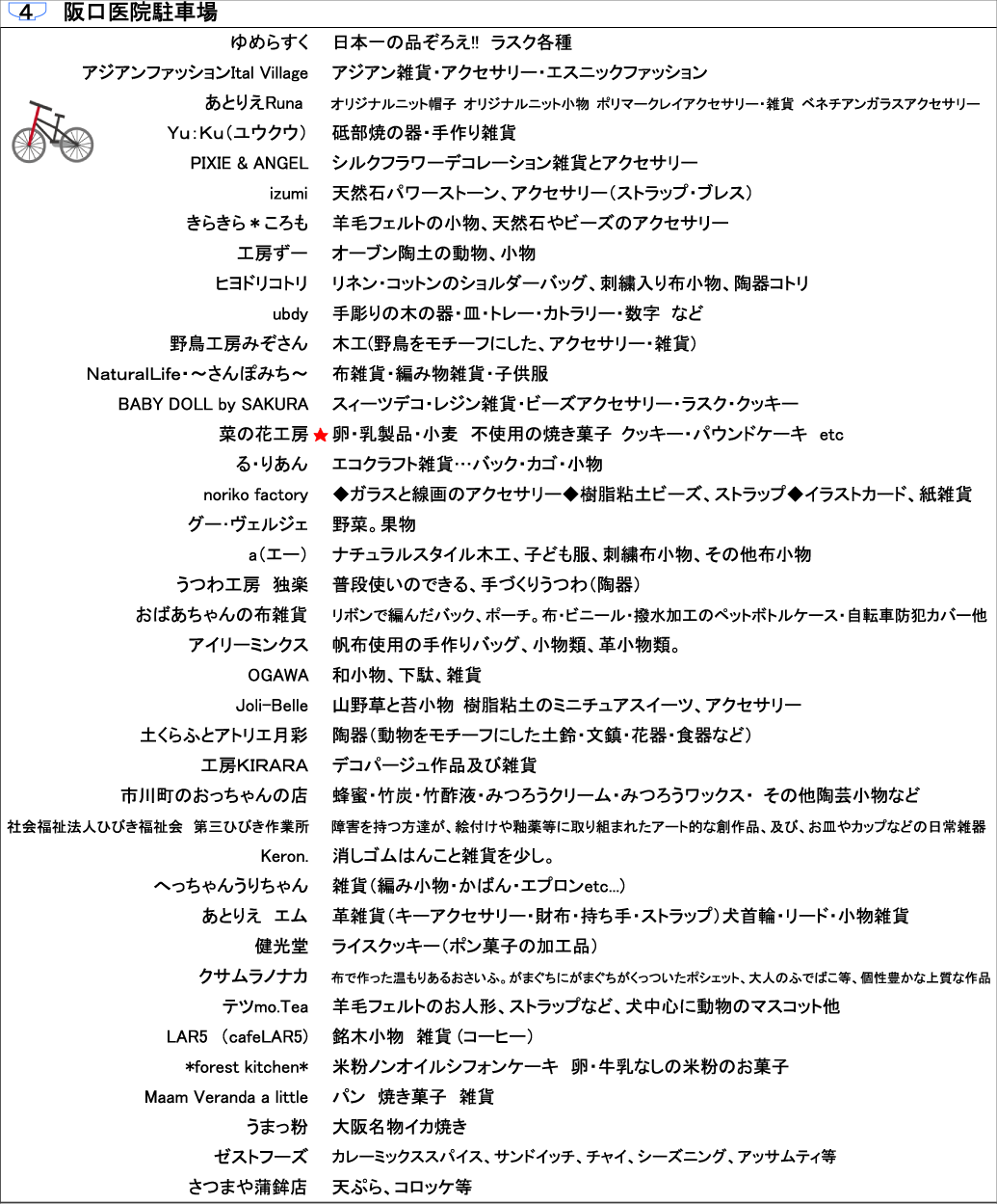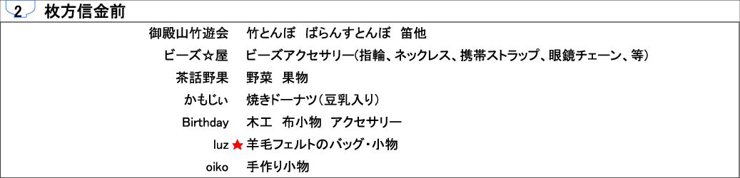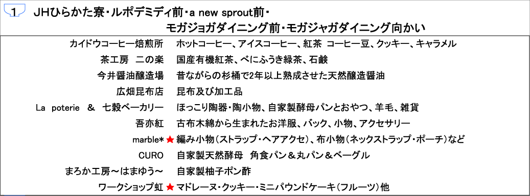 最後に今回の出店者一覧。★は初出店です。