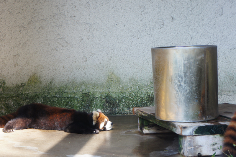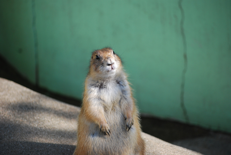 もうすぐ飼育員さんがエサを持って出てきそうな雰囲気に気づいて全員で待ち構えてます。