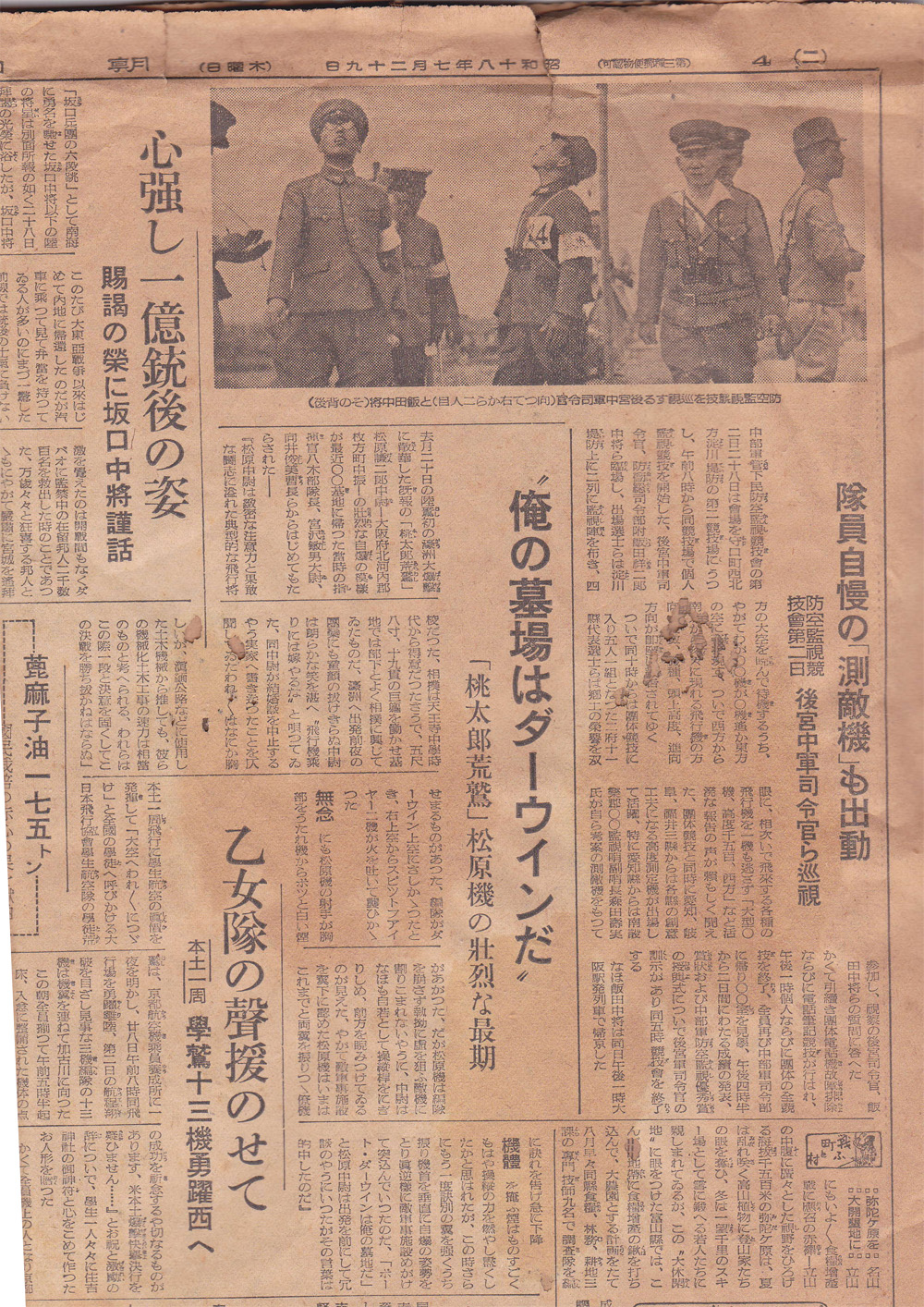 「俺の墓場はダーウィンだ」タンスから出てきた戦時中の新聞に枚方出身の中尉が戦闘機で自爆する壮絶な最期の記事が