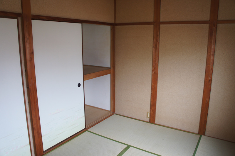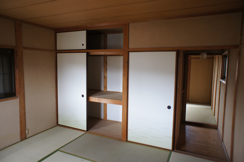 こちらも押入れがあります。右の扉から見えてるのが最初に入った部屋です。