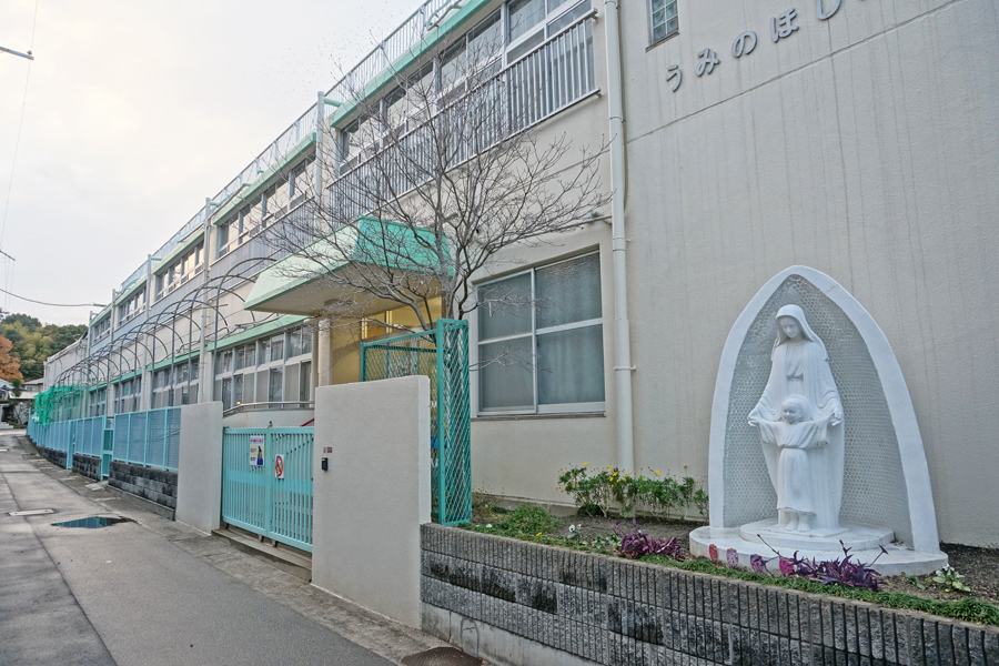 うみのほし幼稚園は岡南町にあるキリスト教系の幼稚園です。枚方の幼稚園で一番最初にできたのは1926年設立の枚方幼稚園(現在は枚方小の場所ですが最初は三矢)で、それから27年間幼稚園はひとつだけという時期が続き、2番目にできたのがこの「うみのほし幼稚園」だそうです。私立では一番最初。