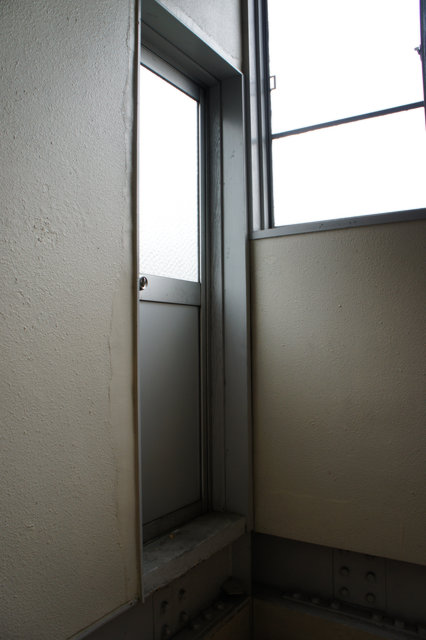踊り場にドアがあって建物外の階段に通じてます。