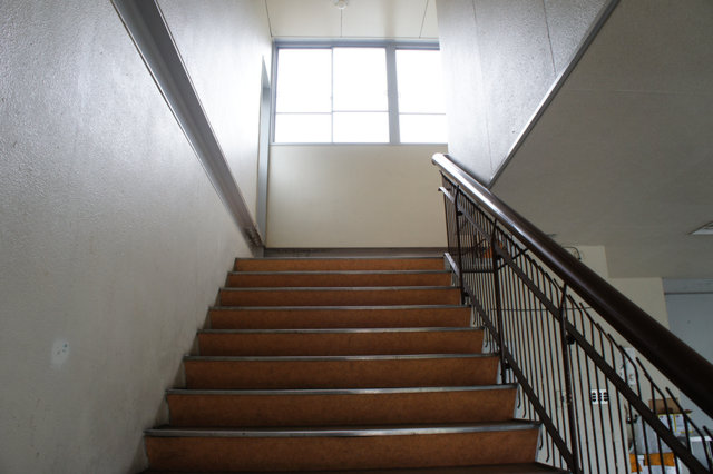 反対を向くと数段の階段があって2階廊下。