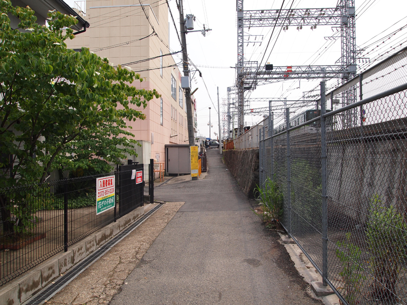 あっちに行くとすぐ牧野駅です。この道は映画「オカンの嫁入り」の撮影で宮﨑あおいが通りました。