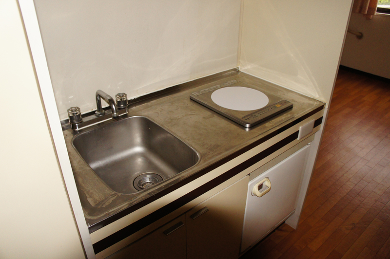 そしてキッチン。小さな冷蔵庫付きです。