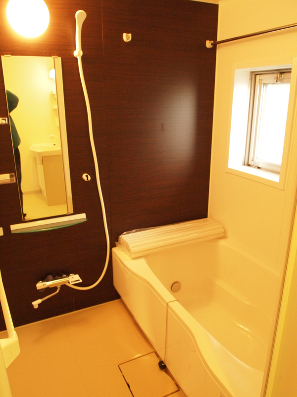 お風呂は一坪タイプでかなり広め。まるで新築分譲一戸建てのお風呂のようです。