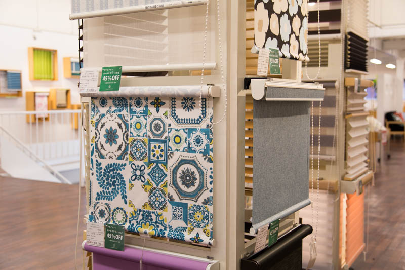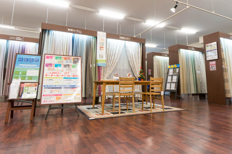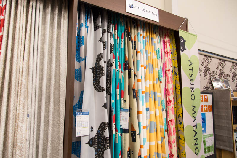 2階へ上がるとたくさんのオーダーカーテンが置かれています。