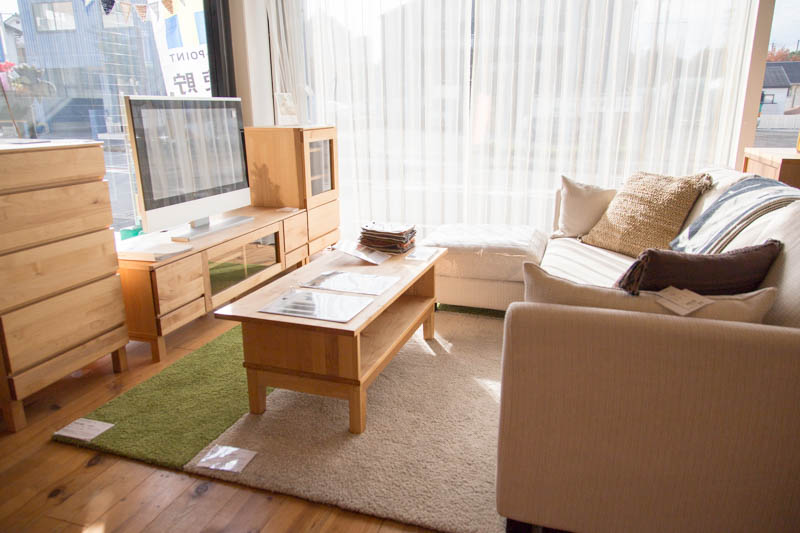入ってスグ左手側はソファーやテーブルなどの家具が中心に置かれています。