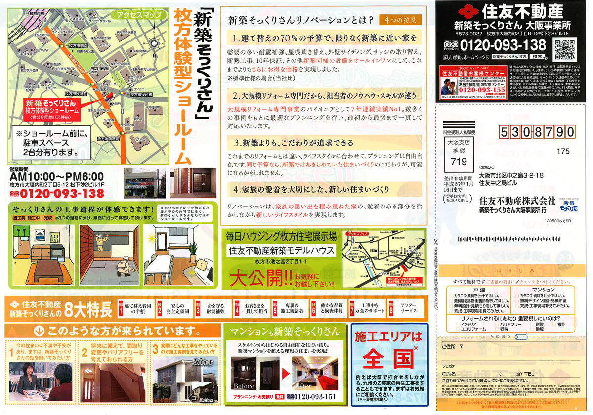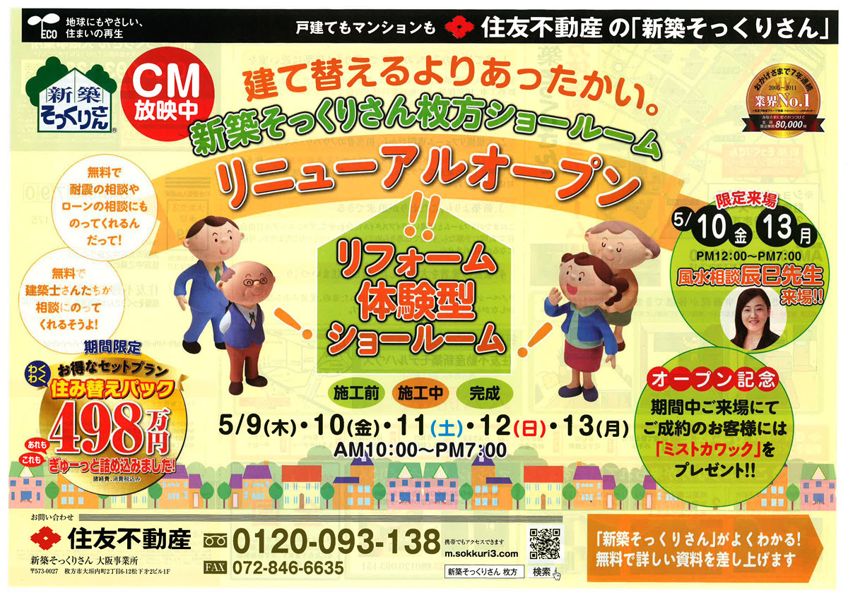 住友不動産の「新築そっくりさん」で建て替えより割安にリフォーム!体感型枚方ショールームがリニューアルオープンイベントを5/9〜13開催【ひらつー不動産】