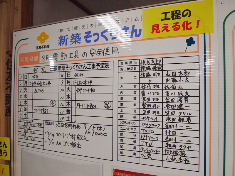 そして1週間に一度、現地にてお客さま・棟梁・SE(セールスエンジニア)で工事内容を打ち合わせします。