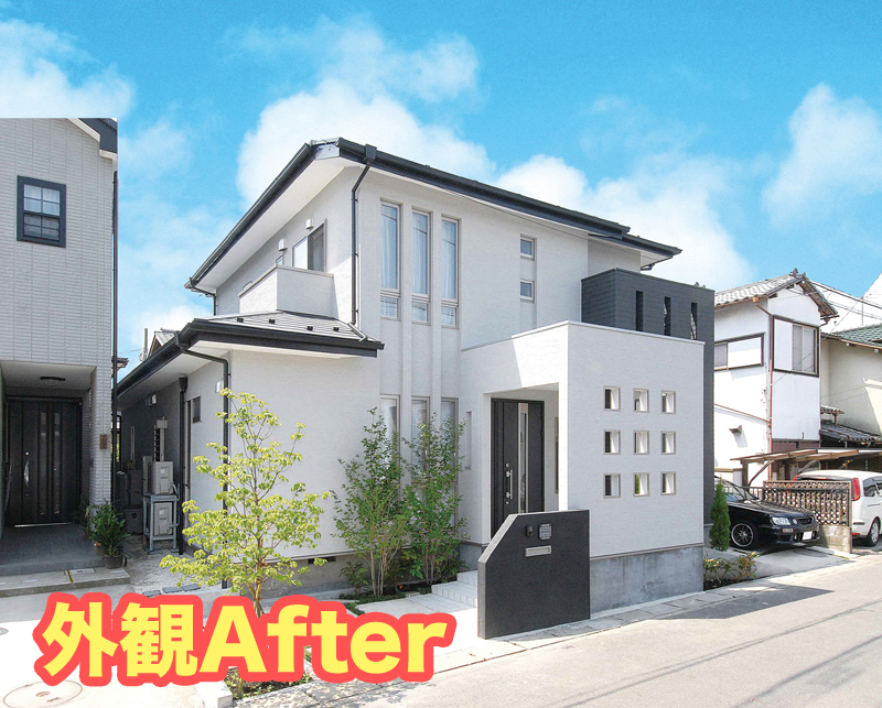 取り壊しをせずに建て替えの50%~70%のリフォーム費用で、まだまだ使える基礎や柱といった骨組みを上手に活かし、構造も、外観も、室内も、設備も一棟まるごと新築のように生まれ変わります。