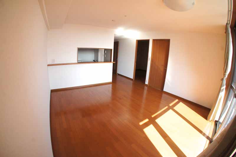続いてはメインのLDK15.8帖。手前にキッチンが。