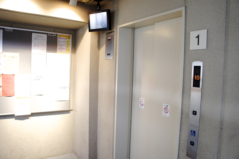 エレベータ。エレベータ内の様子も分かりセキュリティ高し