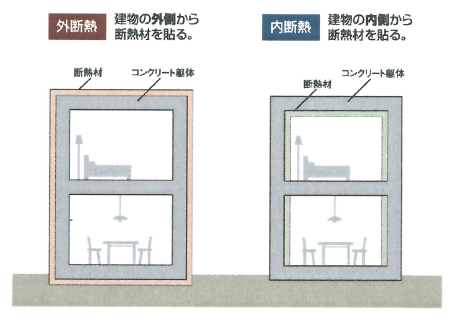 その点、外断熱工法では断熱材でコンクリート躯体をすっぽり覆うので外部環境の影響を受けにくくなり、建物の寿命が長くなります。そして温度は1年を通してほぼ一定に保たれ、「夏は涼しく冬は暖かい」環境をつくり出すので、冷暖房費が大幅に削減できたり結露抑制にも効果があります。