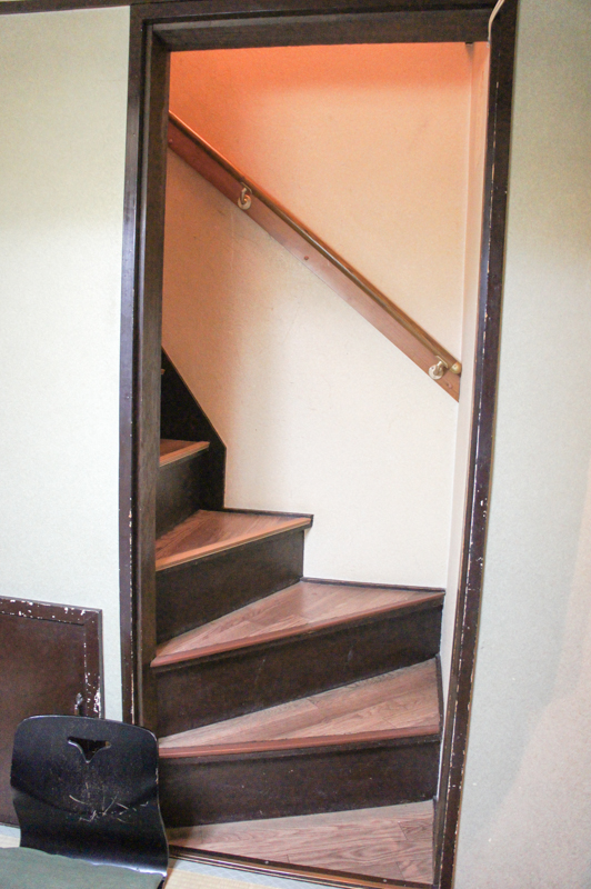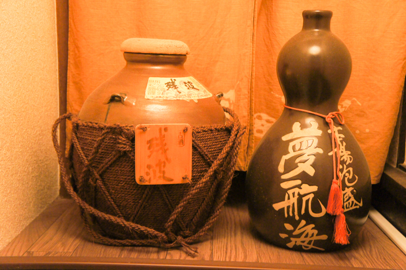 階段途中。大将が沖縄出身とのことでお店の所々に沖縄に関するものがあります。