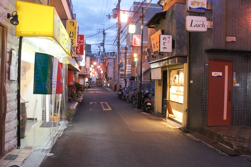 こっちに行くと、枚方市駅。「みんなのたちのみ」や「黒毛和牛ひらかた」「アワーズキッチン」があります。