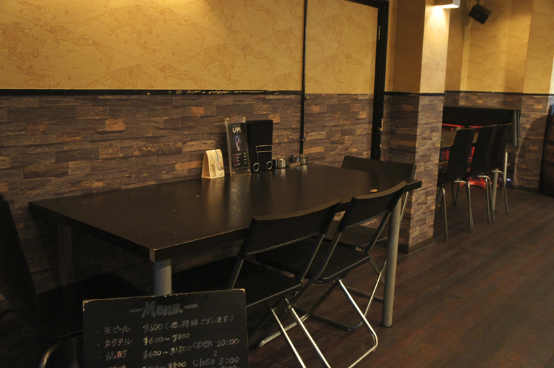 入って右側には、ゆったり座れるカウンター席。左側には手前と奥にテーブル席があります。「ご予約を頂ければ貸切も相談にのります」とのことなので、2次会や3次会の利用にもピッタリです