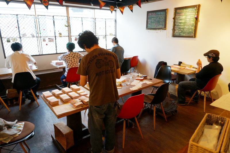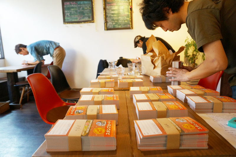 ちょうどお話を聞いた日にスタンプカードが出来上がって、各お店に配るための作業も行われました。