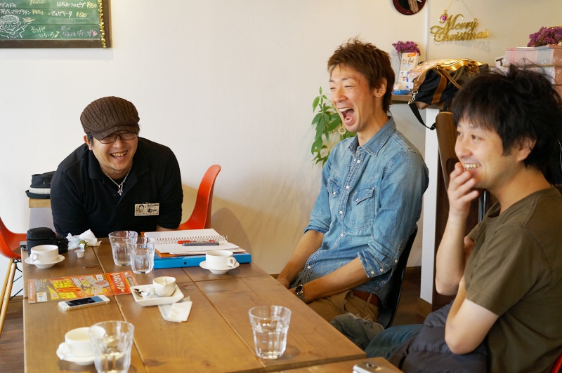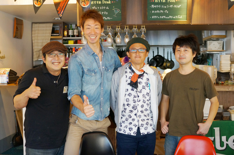 左から「Bar de Moo(バルデムー)」、「黒毛和牛ひらかた」、「山くら」、「温」の店主さんたち。みなさんお店の名前が浸透したほうがいいと思うのであえて店名だけで呼ぶことにします(笑)
