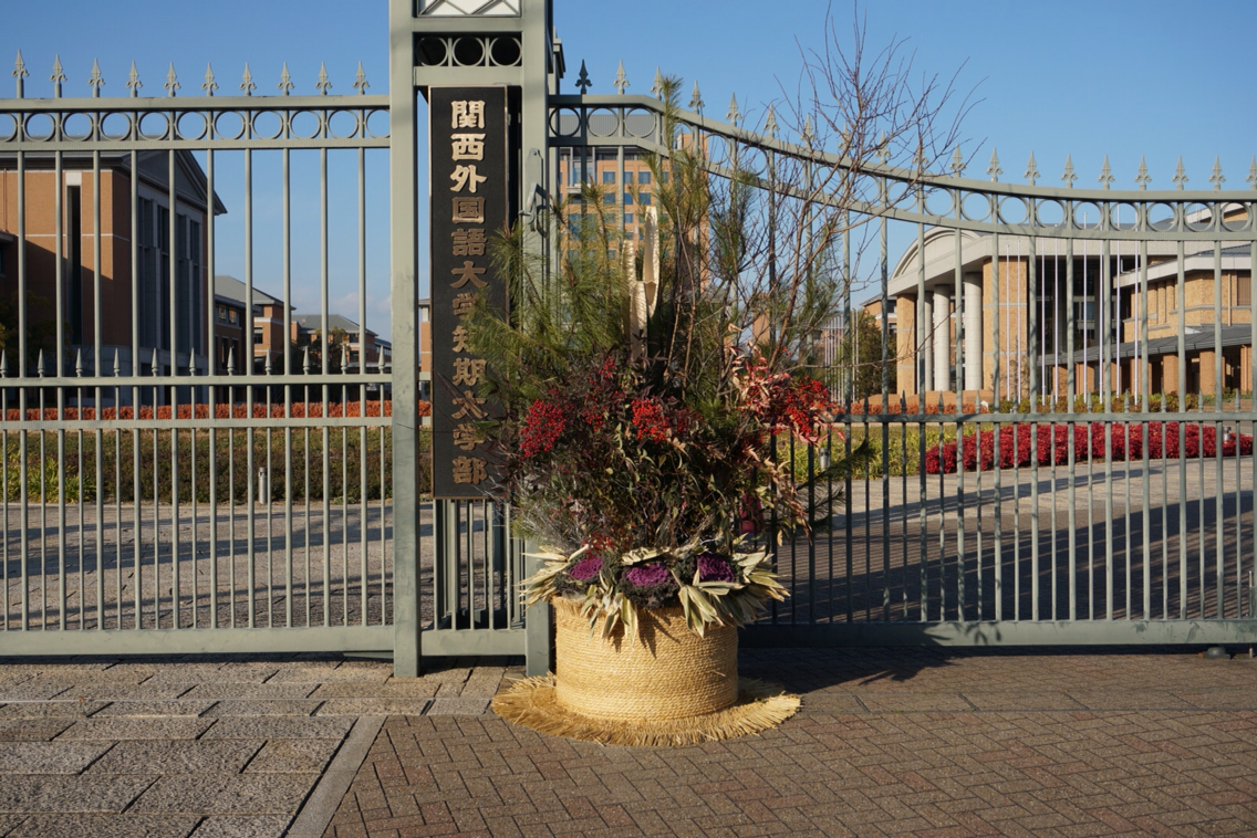 1日にTSUTAYA枚方駅前本店の門松が立派だという写真をアップしましたが、関西外大のも立派でございます。