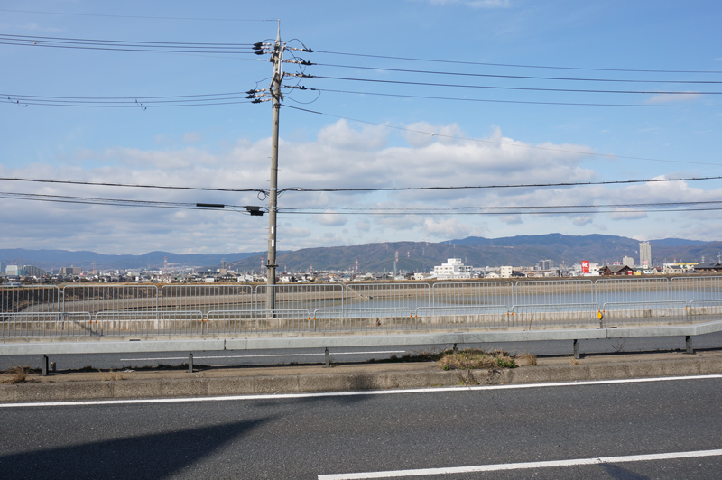 こっちに行くとトヨタカローラのある「招提」交差点。ホソカワミクロンのビルが見えてます。