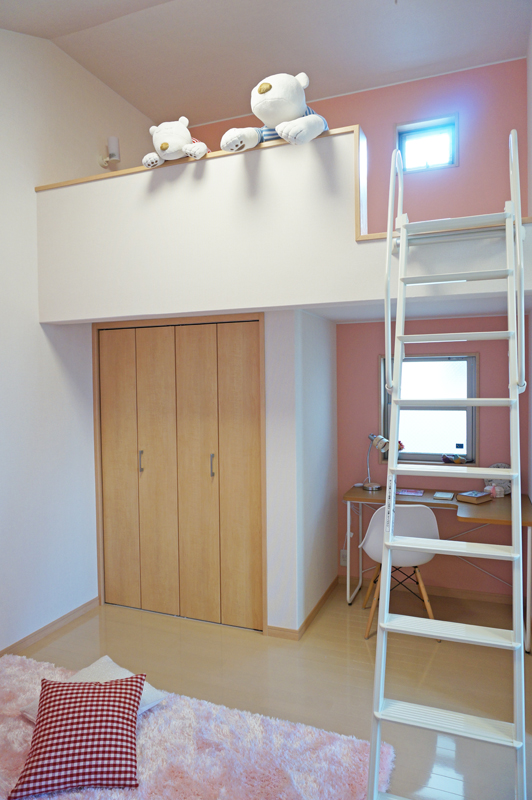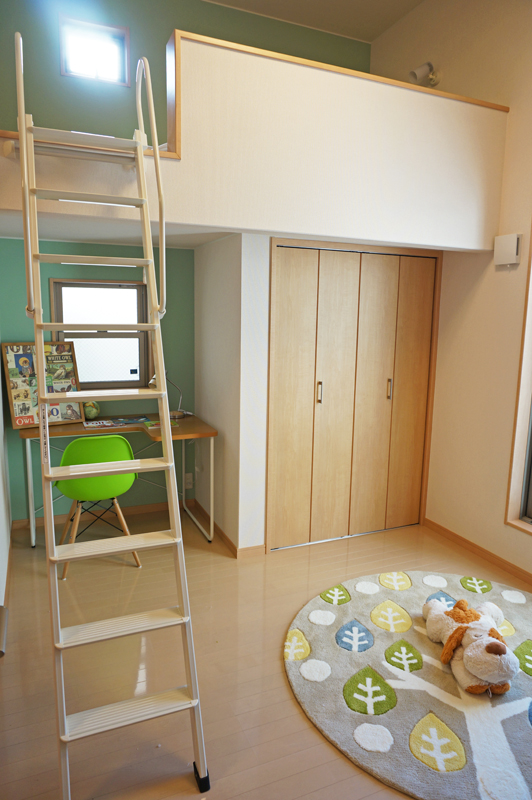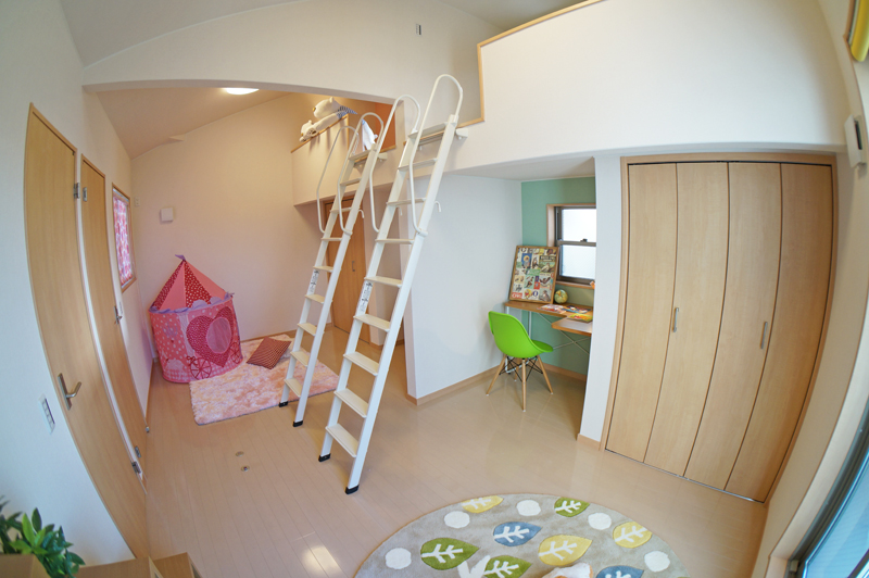 男の子部屋のロフト。まるで2段ベッドみたいでコドモの心をくすぐります。(広角撮影)