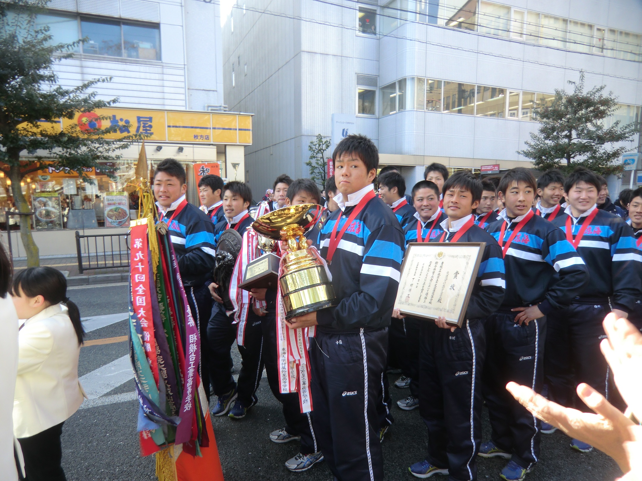 東海大仰星高校ラグビー部が枚方市駅前で優勝パレード by カメ【枚方フォト】