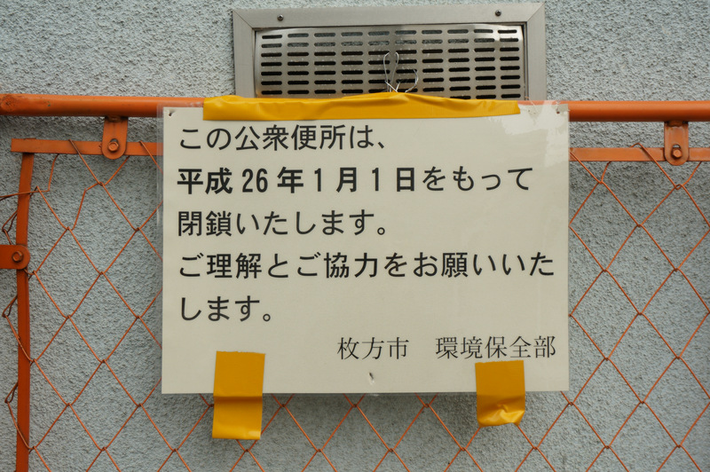 ここのトイレのことは、以前枚方出身バンド「アンダーグラフ」の真戸原さんにインタビューしたときにも話に出てきました。そしてたまたま今回の写真を撮った日に真戸原さんに会う予定がありまして、「あのトイレ閉鎖しましたよ」って伝えたらめちゃくちゃビックリされてました。