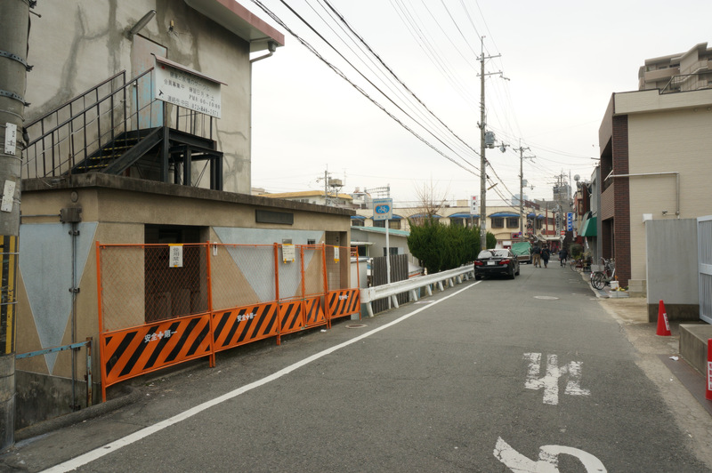 おそらく先日記事にした京阪本線の踏切除去に伴う光善寺駅前広場や周辺の道路整備のための閉鎖なんでしょうね。
