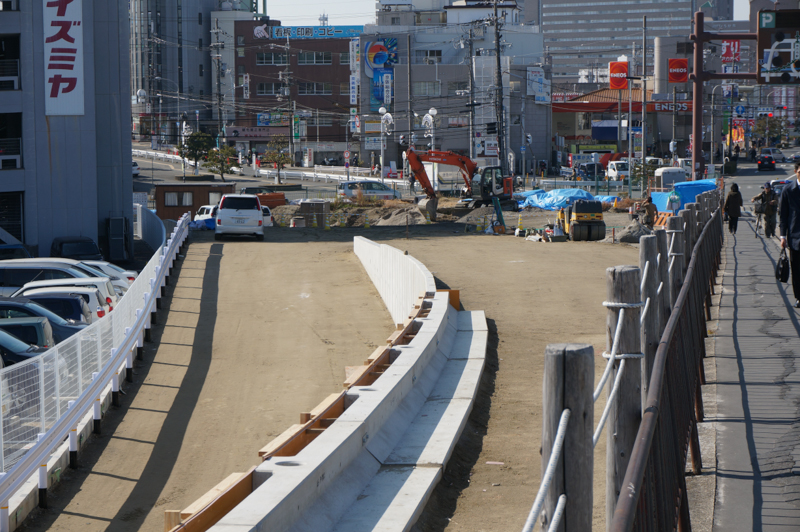 かなり完成形がイメージできるぐらいになってきましたが、この感じだと車道は今より少し南(写真左)にズレますね。となるとマクドナルド前あたりはちょっとスペースに余裕ができそうですが、どういう風になるんでしょうね。